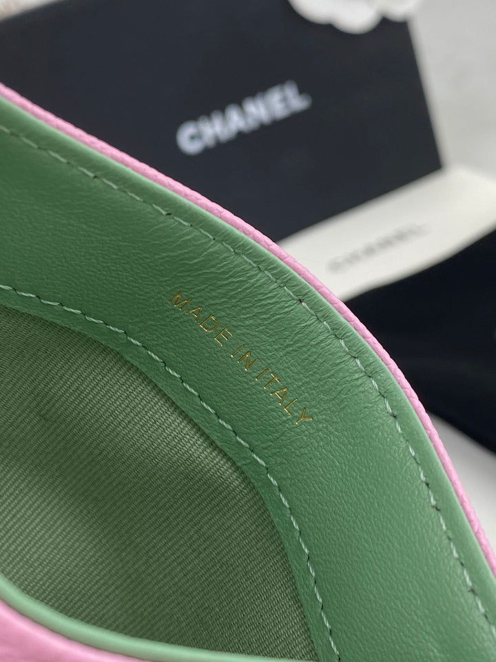 CC CARD HOLDER 19.5 PINK GRAINED CALFSKIN GOLD ICON