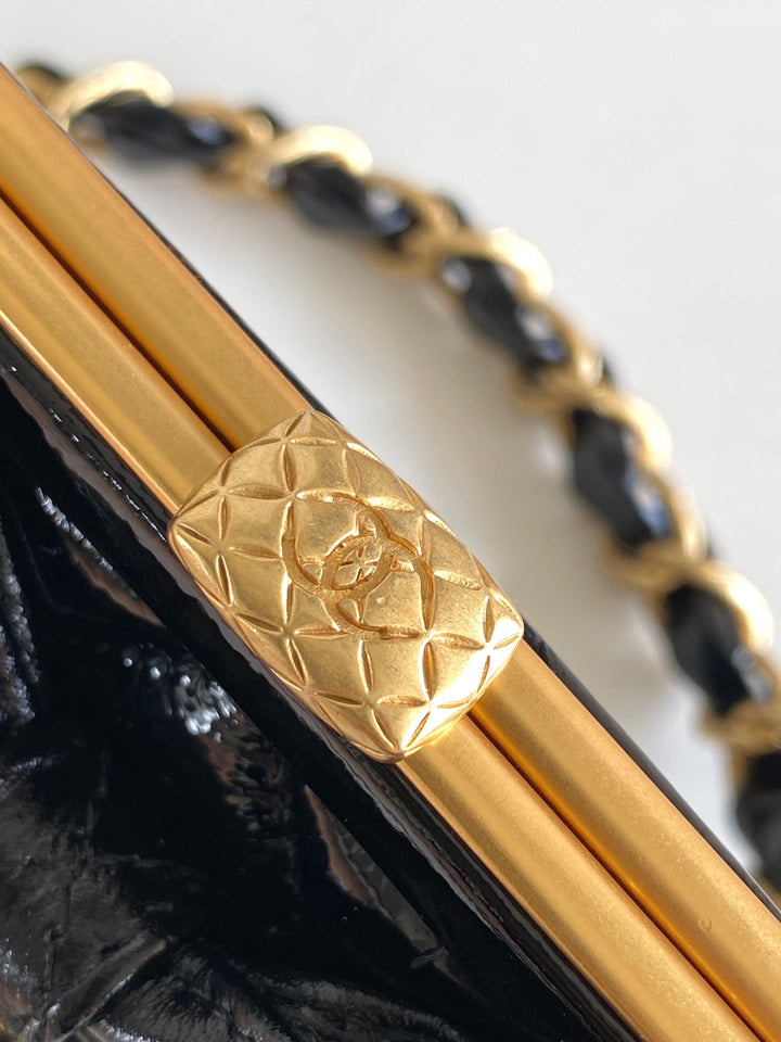 CC MINI 13 CLUTCH WITH STRAP IN BLACK LAMBSKIN ATTACH BOW