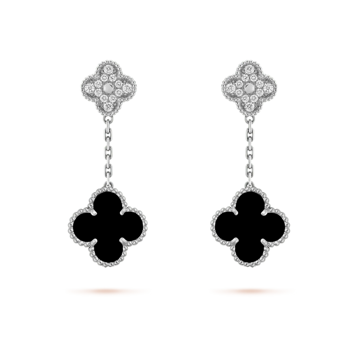 ˇMagic JewelryˇCLOVER 2 MOTIFS DIAMOND ONYX EARRINGS SILVER
