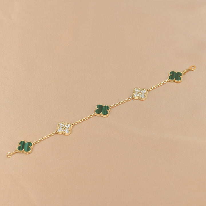 ˇMagic JewelryˇCLOVER 5 MOTIF MALACHITE DIAMOND BRACELET