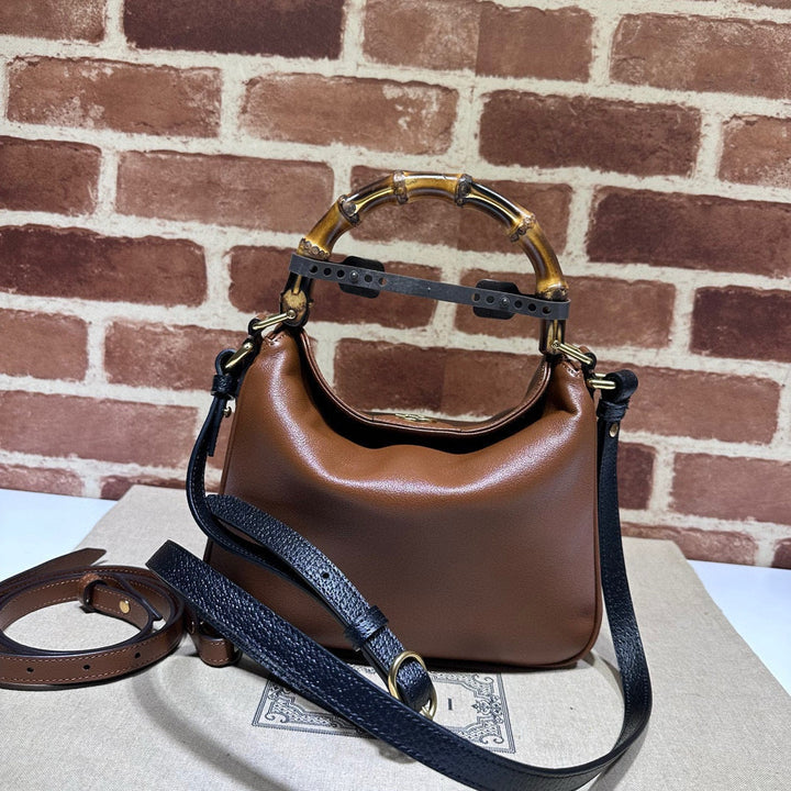DIANA MINI BAG 24 WITH WEB IN WINE RED LACQUER CALFSKIN BAMBOO HANDLE