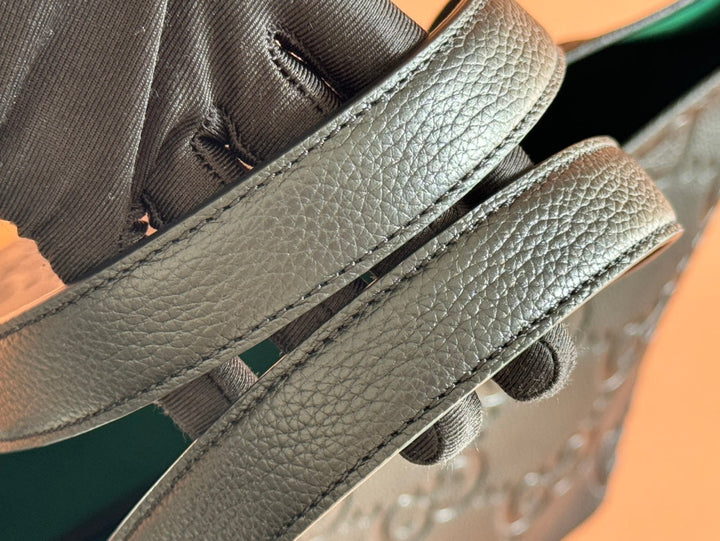 EMBLEM MEDIUM TOTE BAG 30 IN BLACK GG CALFSKIN