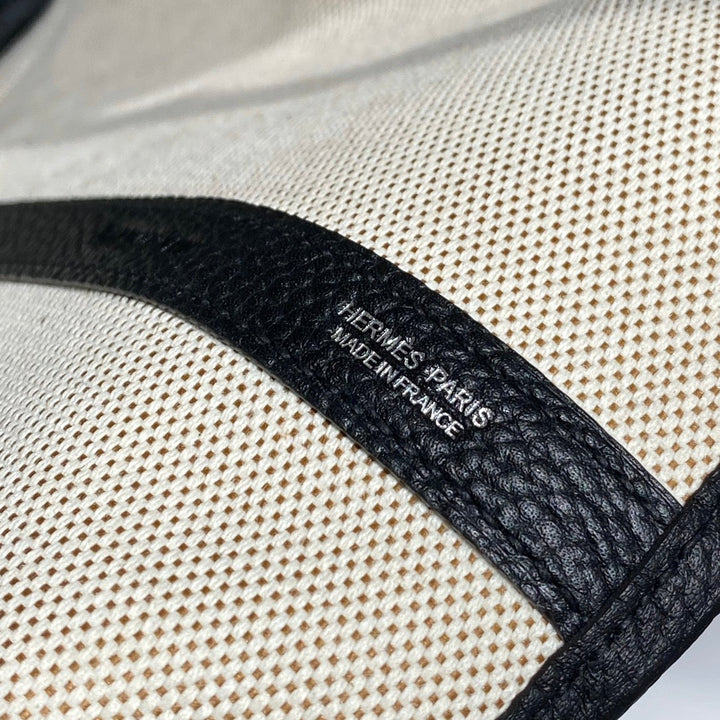GARDEN PARTY 36 IN BEIGE ORANGE AND BROWN TOILE H CANVAS BLACK CALFSKIN HORSE TOTEM PRINT