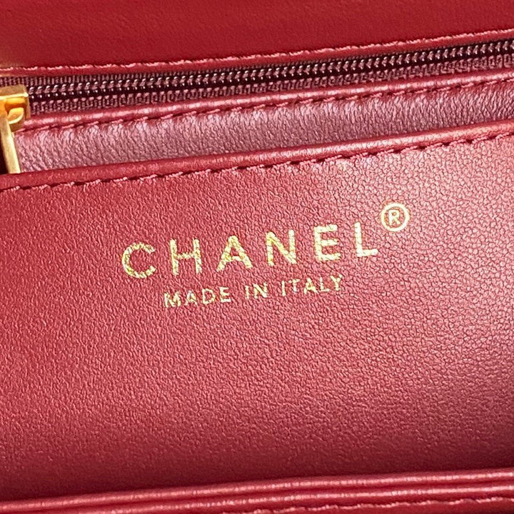 RETRO STYLE FLAP BAG 19 IN STILETTO RED GRAINED CALFSKIN GOLD HARDWARE